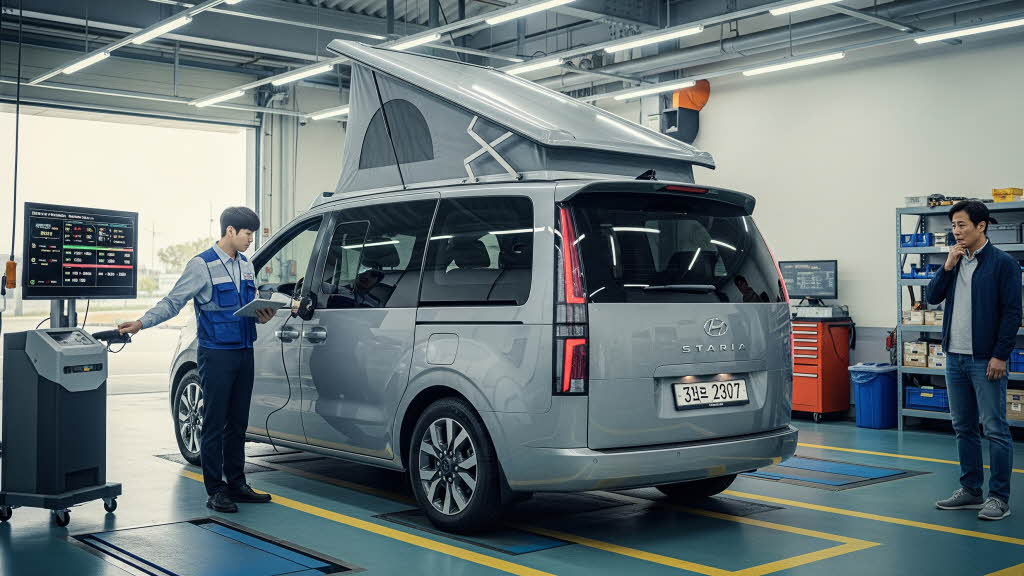 - 검사 내용: 검사관이 줄자와 저울 등으로 차량의 제원(길이, 너비, 높이, 무게)을 실측하고, 소화기, 환기구, 침상 크기 등 모든 설비가 설계도 및 안전 기준에 맞게 설치되었는지 꼼꼼히 확인합니다.